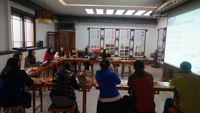 沙龙围绕着“京剧程式化的艺术表现”这一主题,主要讨论了“虚”、“实”,“形”、“神”等文艺学、哲学理论的程式化表现方式,及其在京剧舞台中的艺术表现。同时,以具体剧目为例,着重讲解了京剧唱腔、动作、舞美、编剧等四个方面的程式化表现。沙龙活动中,与会老师仔细聆听了陈雪老师的汇报及嘉宾的讲解和展示,随后纷纷就议题中的相关问题展开了讨论。刘琨老师提出,可以将京剧艺术欣赏作为汉语国际教育,专业学生培养中文化课的一部分,促进大家对非物质文化遗产的关注和理解;许端老师提出如果可以针对京剧某一剧目的历史流变进行深入研究,必定很有意义;王晓音老师谈到作为普通观众及留学生观众应如何更好地欣赏京剧。此外,刘国伟、李锦、刘琳、高红娜等老师也从各自角度对京剧艺术如何应用到对外汉语教学课堂提出了很多有意义的建议和意见。