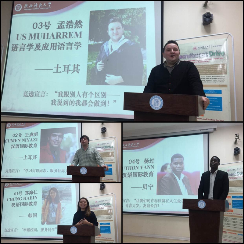、文学院、心理学院、新闻与传播学院等4个学院,韩国、土耳其、哈萨克斯坦等7个国家的共计12位留学生候选人参与了主席团、部长团的竞选角逐。91大神