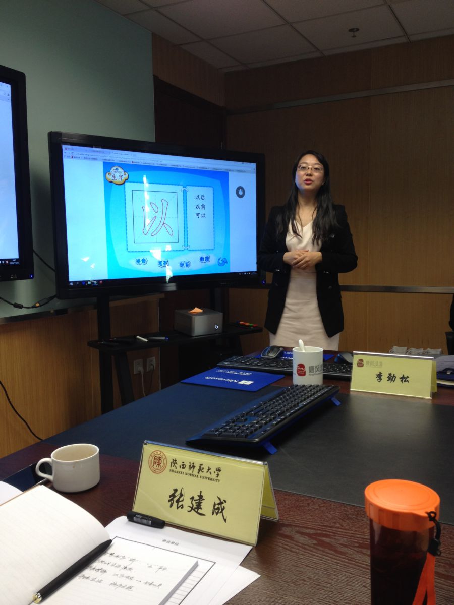 院长张建成作为主持人首先介绍了参会的嘉宾以及在互联网+时代华文教育暨汉语国际教学面临的挑战与机遇和会议召开的背景和我校在华文教育信息化建设方面的经验。接着,唐风汉语教育科技有限公司总裁李劲松做了教育对外开放政策背景下的“互联网+华文教育暨汉语国际教学”发展和HSK考教结合系统及汉语国际教育云平台展示的主题报告,唐风汉语相关技术人员做了智慧教学系统介绍、精品微课展示等专题报告以及唐风汉语与北京大学、华中师范大学、华侨大学等国内知名高校的合作案例分享和互联网+时代基于唐风汉语国际教育云平台的海外留学生招生市场案例分析。