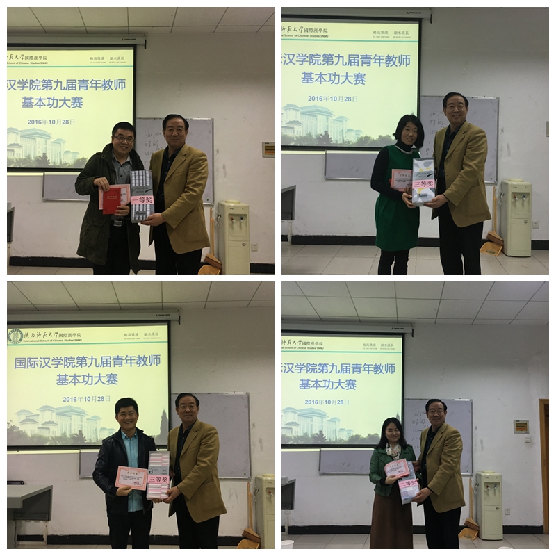 青年教师代表参加校级比赛,张欲晓、孙建伟老师获三等奖。张建成院长为每位获奖教师颁发了荣誉证书和奖品,并合影留念。