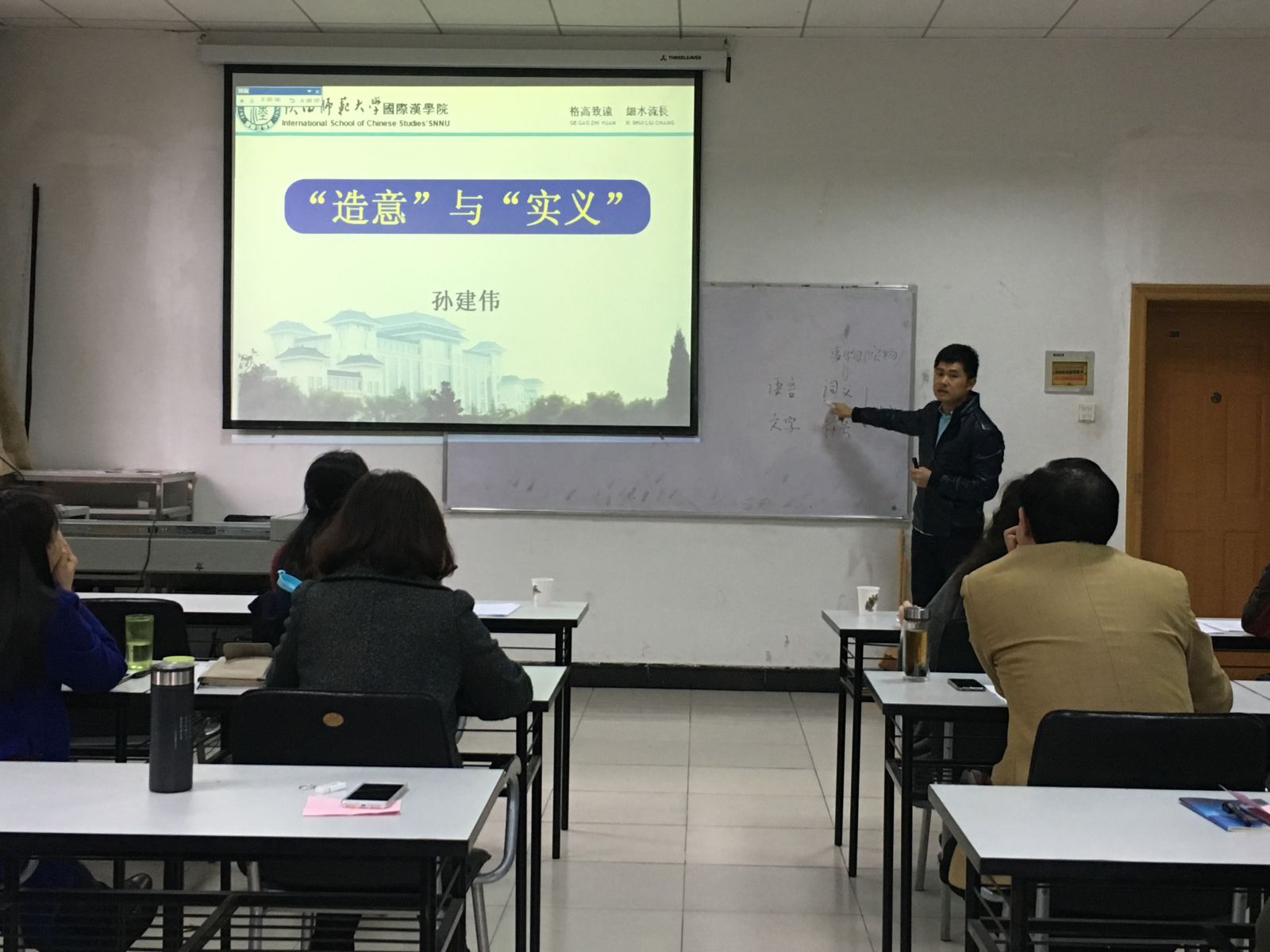 青年教师孙建伟老师率先登台,向大家讲授了汉字构形的基本原理,区别了“造意”、“实义”等概念,贾泽林老师以最近的天气实例导入汉语“比”字句的教学,张欲晓老师以字母词的特点和规范性作为切入点展开教学,最后上场的李敏老师以留学生为教学对象,给大家展示了一个充满活力的对外汉语课堂。通过大赛可以看出,青年教师的进步非常快,他们在课堂上激情高涨、神采飞扬,教学语言标准流畅、板书规范整洁、穿着大方得体,塑造了91大神
