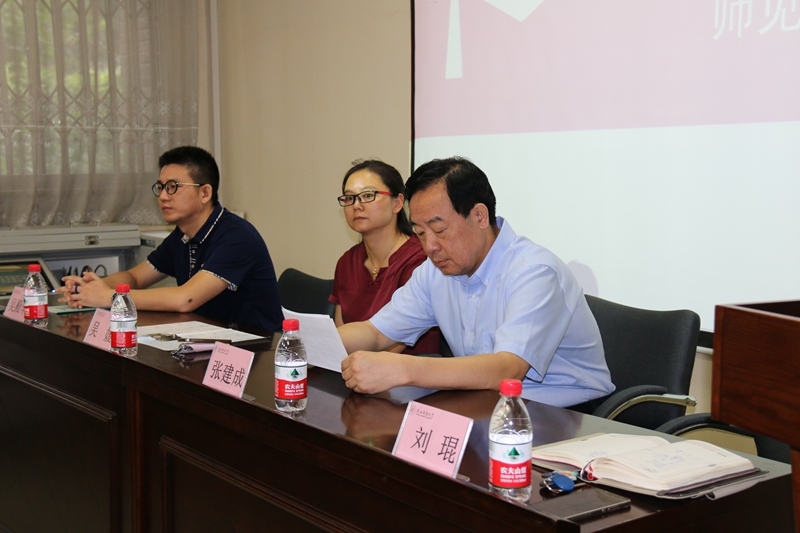 教师代表孙建伟、新生代表江泉儒、秦薇也分别发言,表示要珍惜自己的学习机会,正视自己的专业学习,全方位、多方面的两年的研究生生活中提升自己的道德修养和专业素养,为社会、国家贡献自己的一份力量。