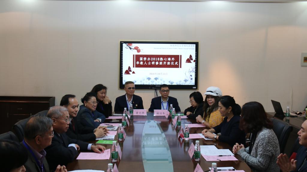 2018年10月13日上午,国务院侨办2018年“热心海外华教人士”研习班开班仪式在我校雁塔校区崇鋈楼怀德厅顺利举行。美国希望中文学校北维校区董事兼前校长李卉、老挝沙湾拿吉中华理事会理事长李开明、柬埔寨柬华理事总会文教处副会长蔡伟华、泰国曼谷孔堤公学慈善副主席林滨汉等出席了本次开班仪式,91大神
