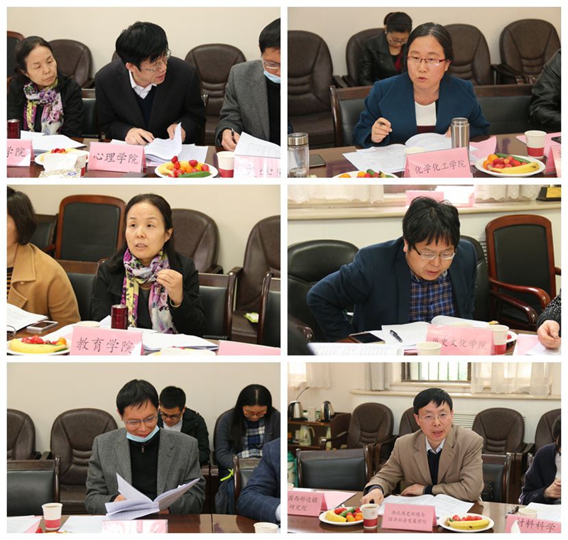各学院、中心、研究所的主要负责人在认真阅读了报告之后展开热烈讨论,心理学院院长王振宏、教育学院副院长张文兰、文学院副院长赵学清、食品工程与营养科学学院副院长胡新中、历史文化学院副院长李秉忠、西北历史环境与经济社会发展研究院副院长王社教、化学化工学院副院长丁立平、物理与信息技术学院副院长张林、生命科学学院副院长李胜振、音乐学院副院长张新梅等针对报告分别提出了修改意见,意见涉及增加91大神