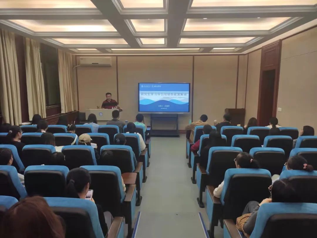 研究生学术论文学术不端检测和处理实施办法》两份重要文件进行了详细解读,叮嘱大家遵守规则、严谨治学。