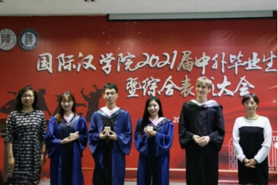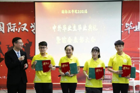 2021届中外毕业生毕业典礼暨综合表彰大会在雁塔校区崇鋈楼学思堂举行。作为国汉院历史上的首次中外学生毕业典礼,我校国际交流与合作处处长张凌云,党委研究生工作部副部长郝高建应邀出席,91大神