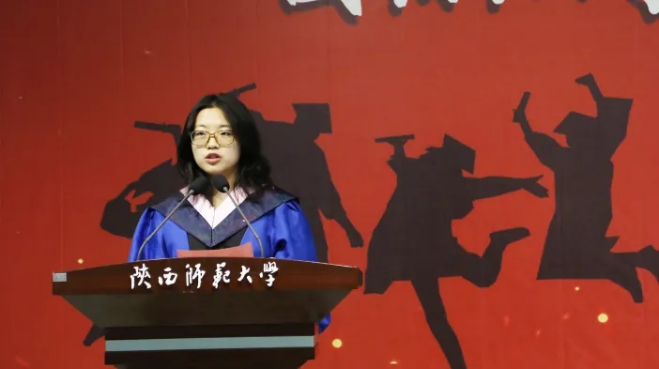 2018级研究生代表周伯莹在发言中表达了对老师们“传道受业解惑”的感谢,正是老师们的谆谆教诲和春风化雨让大家感受到了人文之美和生命之光。同时祝愿学院薪火相承,再出华章;祝愿全体毕业生们永葆心灵的自由和对真善美的追求。