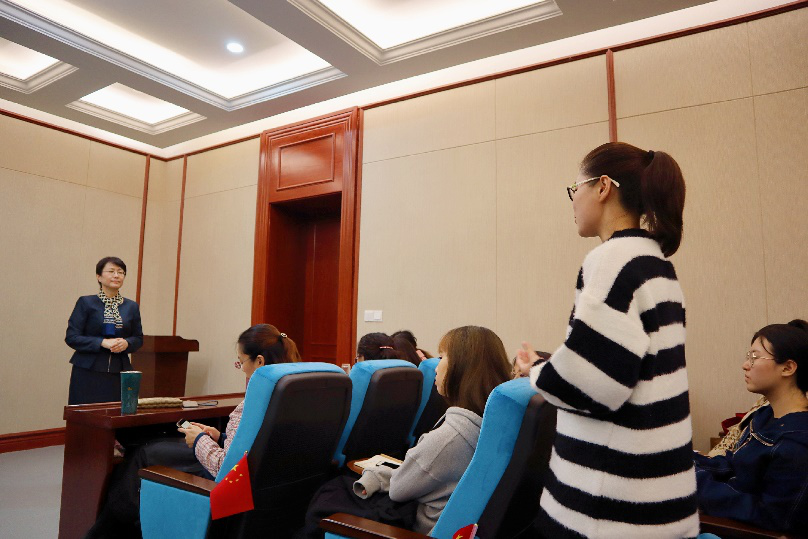 丁教授的讲座生动有趣,通过互动教学模式的案例展示,系统直观地让学生真正知道如何设计互动活动,使学生受益匪浅。无论是通过德语互动来讲解“发现式学习”理论,还是通过猜亲属的互动方式来加深学生对“联想猜测互动法”的认识,都是通过与学生真正的互动,让学生在互动交流中受到专业知识的熏陶,真正达到了“润物细无声”的效果 。
