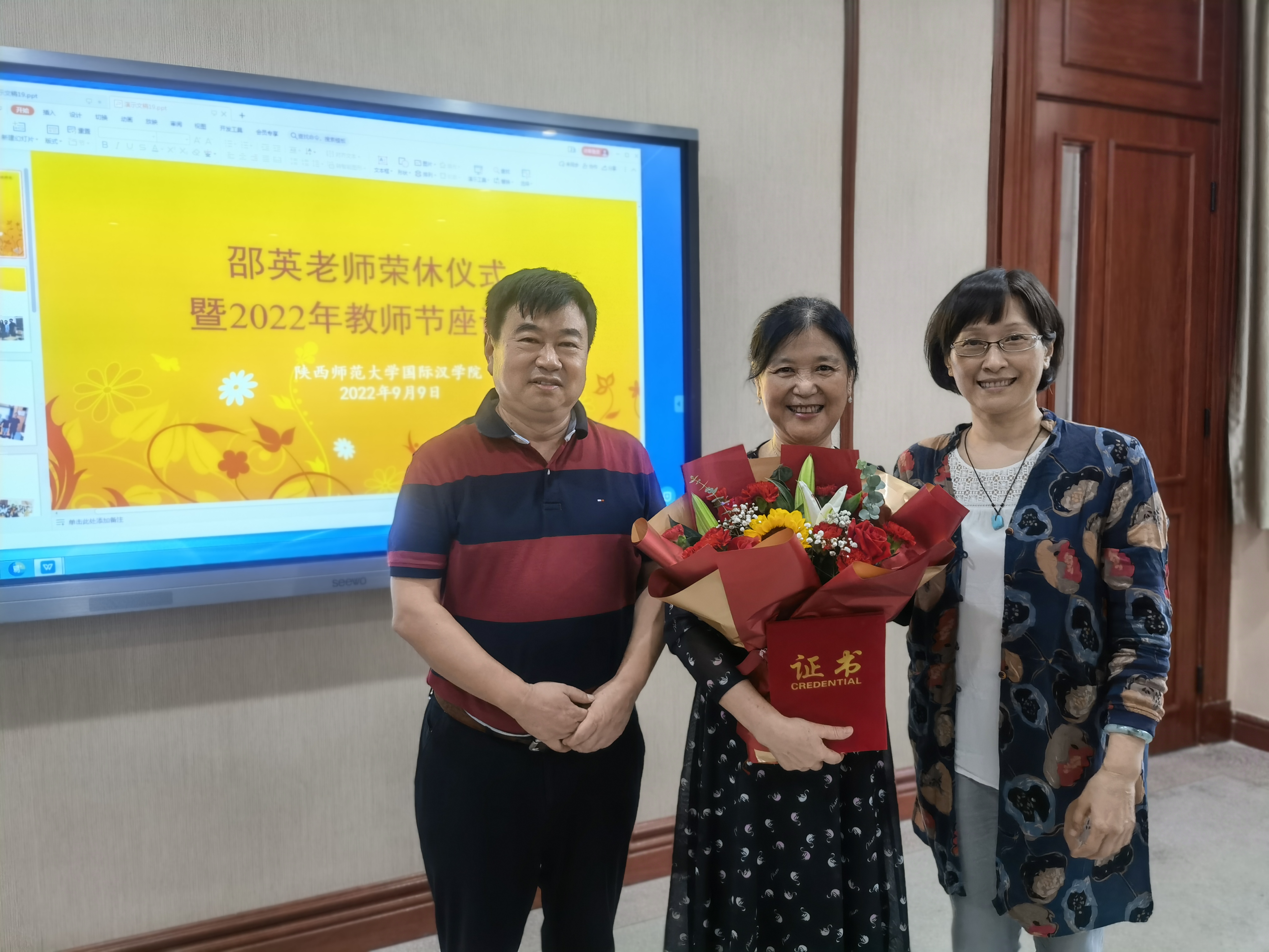 石洛祥院长回顾了邵英老师从教35年以来为学院发展做出杰出贡献,代表学院向邵英老师数十载投身留学生教育事业,服务学校发展的辛勤付出致以崇高的敬意,并为邵英颁发了荣休证书。