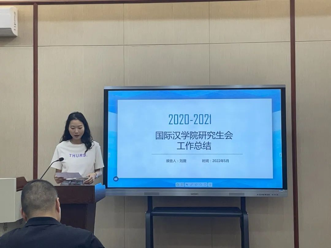 会议第二项是研究生会年度总结汇报。研究生会主席团执行主席刘薇与研究生会主席团成员梁蕾和陆源对学院举办的活动进行年度汇报与总结反思。团总支副书记倪庆、团总支组宣部负责人王志新、文体部成员付方玲、学术部负责人韩雅欣、志愿服务部负责人崔斯维、宣传部负责人任娟对所承办的活动和工作内容进行详细介绍。