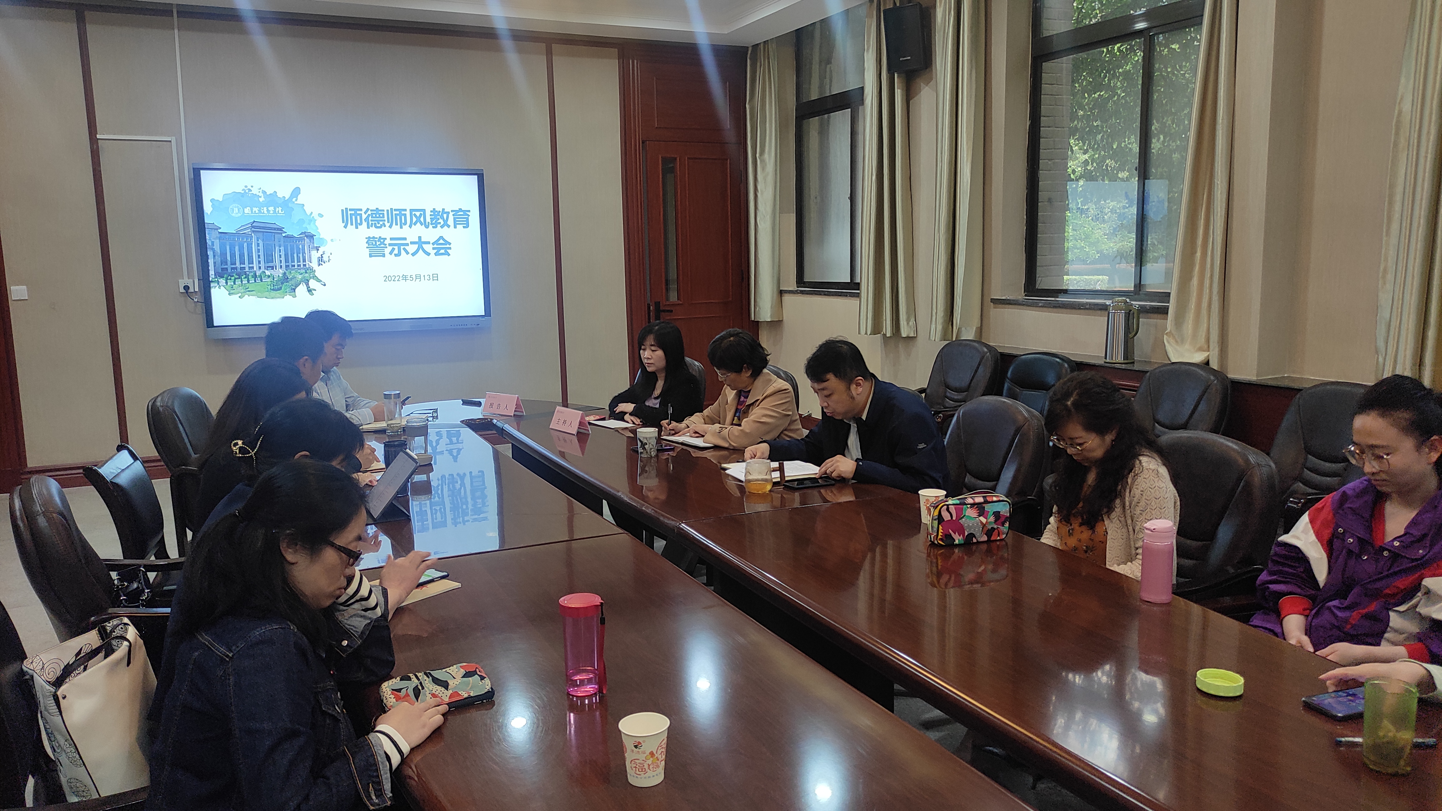 在学院一层会议室召开师德师风教育警示大会。会议由学院党总支书马兰主持,学院全体教师参会。