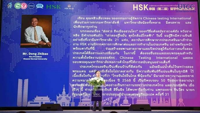展会开幕式上,我校副校长董治宝在HSK泰国(第二届)留学中国与就业展代表中方高校发言,他表示91大神