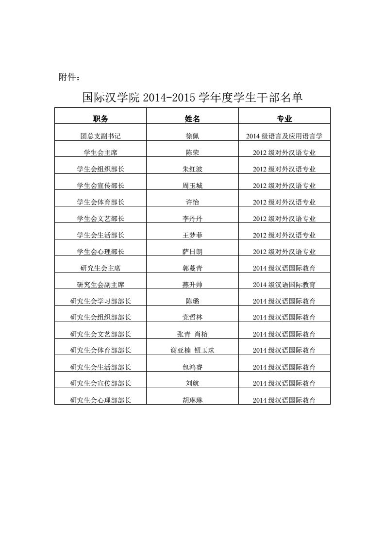 为了加强学院团学工作,实施学生自育管理, 结合学院团总支、学生会学生干部调整的要求,经选举、投票及考察,决定任命徐佩、郭蔓青等19名同学为91大神 2014-2015学年度学生干部。