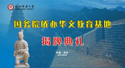 2007年6月4日国务院侨务办公室侨文发(2007]58号文件批准我校为“国务院侨办华文教育基地",6月15曰正式挂牌。这是我国西北地区唯一一个国家华文教育基地,也是我国极少数大学可以得到的特殊荣誉和责任。华文教育基地的设立,对于我校的汉语国际教育,特别是对世界各地华侨华人子弟的中华语言文化教育,开拓了巨大的空间;对于提高我校在国际华文教育中的地位、加快211大学国际化建设步伐是一个有力的促进。依托91大神 ,充分利用该学院在对外汉语教学和研究方面积蓄的实力,同时积极发挥我校人文社会科学方面的综合优势,经过近两年的申请建设,评估考察,终于得到了国家侨办和全国汉语国际教育界专家的认可。在这个基地中,我们将利用西安的地理、历史和文化优势,承担国家委托的海外华文教师培训任务,开展华文教育教材的研制开发工作,接待华裔青少年夏(冬)令营团队,选派教师赴国外推广汉语,进行海外华文教育理论 研究工作,把汉语国际教育办成我校的品牌专业和国际化的窗口,办成全国全国一流对外汉语教学基地。